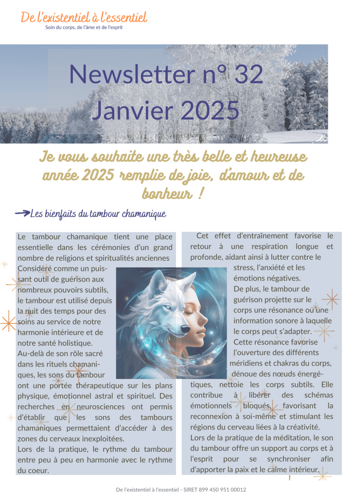 - Une modification de votre état de conscience par le son du tambour chamanique.